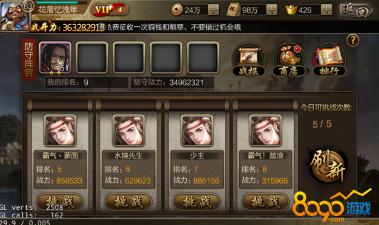 搜索"8090网页游戏"在铁骑三国中,想要证明自己的实力,可以来竞技场挑战一下,对面强大实力的对手,你是否能打败对方呢?快来试试吧。