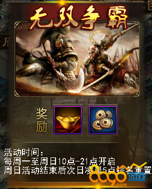 搜索"8090网页游戏"铁骑三国2游戏里,自己的主城绝对是一个非常重要的功能,大家一定要去多多参加回城里面的活动还有任务,比如府库、客栈、集市、酒馆、战役,还有演武场。今天给大家介绍一次演武场里的无双争霸活动!