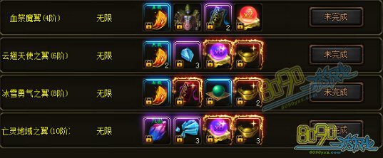 4、亡灵地域之翼10阶,9级强化石*1,狂暴结晶大*1,8倍经验丹三小时,1000绑定元宝*3