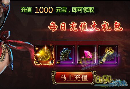 活动内容:每日充值1000元宝,即可领取充值礼包。