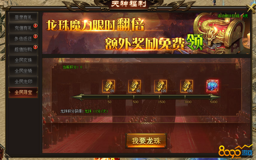活动说明:活动期间内,全民寻宝额外送