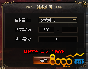 选择副本后,设置队友等级及战力需求即可创建自己的副本队伍。