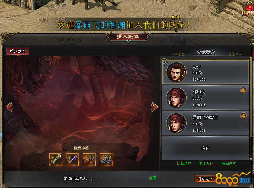 搜索"8090网页游戏"在8090《天神战》游戏中,多人副本是游戏当中高级装备的重要产出途径,每周只需要花费少许时间击杀通关BOSS,即可获得丰厚奖励。