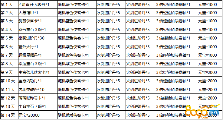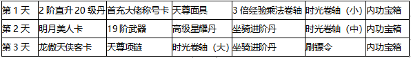奖励:20阶自选装备箱*1,内功宝箱*2,3级幸运宝石随机宝箱*1