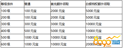活动说明:满足等级条件即可领取海量元宝奖励。