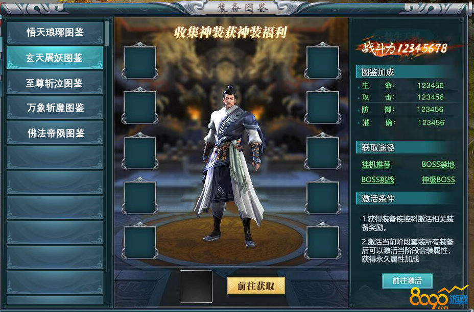 收集红色以上装备可激活图鉴,每激活一件装备图鉴可领取一份奖励