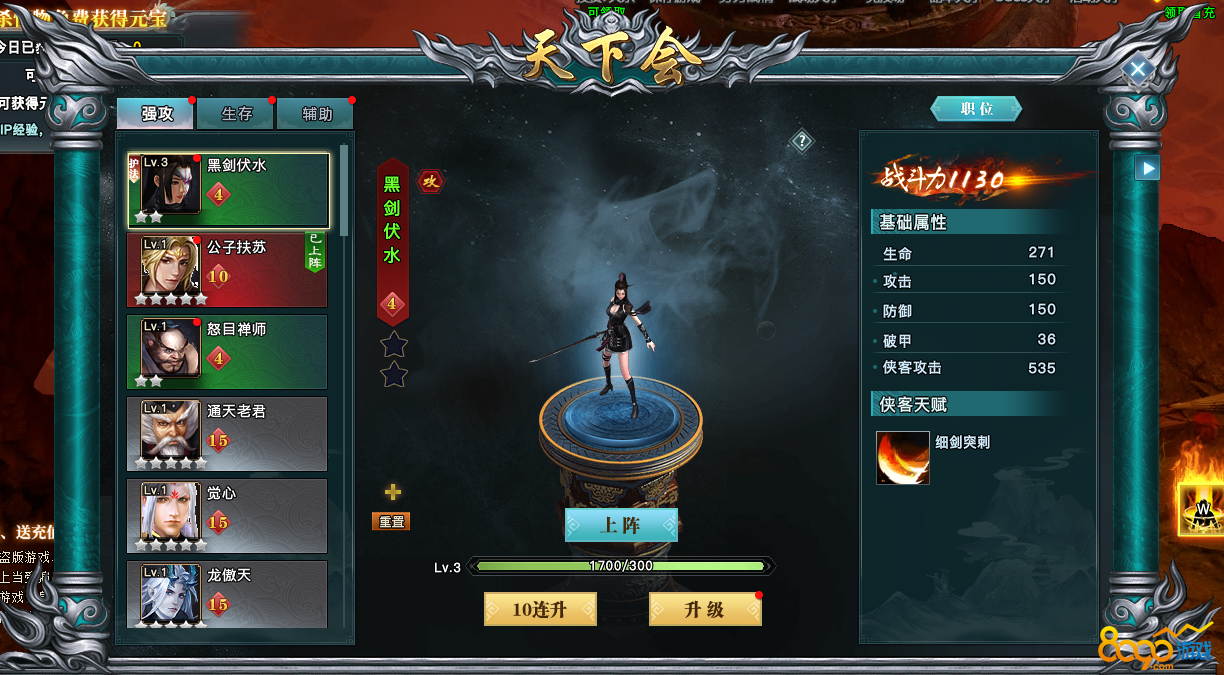 侠客激活后可通过消耗银两提升等级,消耗相同侠客卡来提升星级