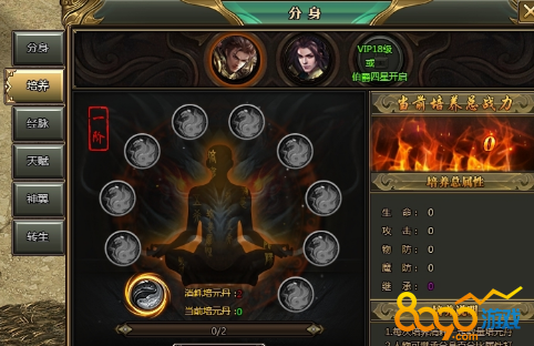 提高分身培养等级可提升分身属性继承比例和分身基础属性。消耗分身培元丹提升分身培养等阶,分身培养等阶共十阶,每阶十级。分身培元丹通过BOSS掉落、运营活动获取。