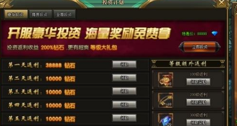 1. 投资返利,200%返利钻石,更有超爽等级大礼包