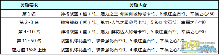 3、达到特定魅力值即可上榜领取奖励,排名奖励每日结算后通过邮件发放。