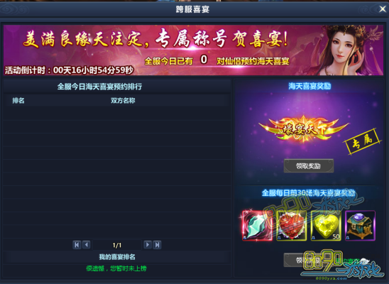 【活动内容】活动期间,每天全服成功预约举办海天喜宴的玩家,可以上榜并领取活动专属称号,前30对成功预约举办海天喜宴的玩家,还可以额外领取一份奖励。