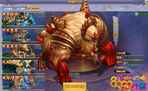 1. 宗门BOSS周二,三,五,六,日20:00-20:30开启