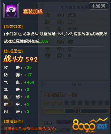 集齐六件装备可以获得套装属性,如下图: