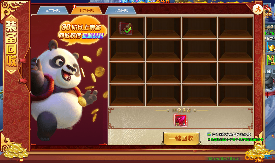 可回收多余的装备后可获得丰厚的元宝和珍稀材料奖励。