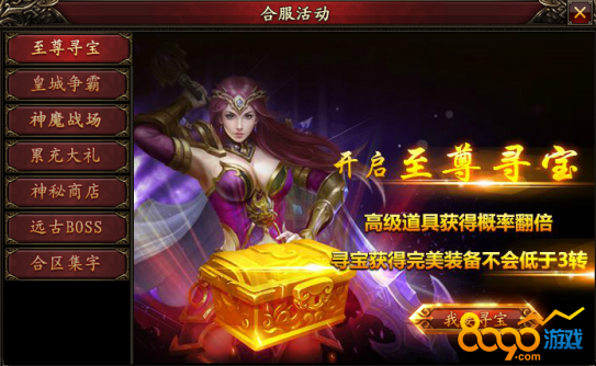 永久开启至尊寻宝功能,寻宝获得完美装备不会低于3转