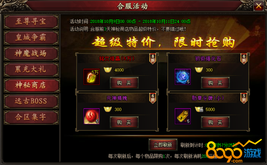 玩法:每个道具可以购买一次,通过刷新,可以将道具全部刷新