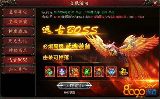 全服玩家击杀,必掉海量元宝和高级武魂装备,玩家自由捡取