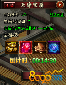宝箱有一定的血量,打完之后会爆出奖励。宝箱一共三个波次,每一波次宝箱打完就会出现下一波宝箱。