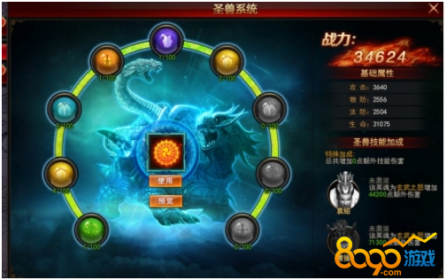 同时每个圣兽都有与之对应的英魂,激活该英魂会对圣兽进行大幅加成,英魂阶数越高,加成的数值就越高。