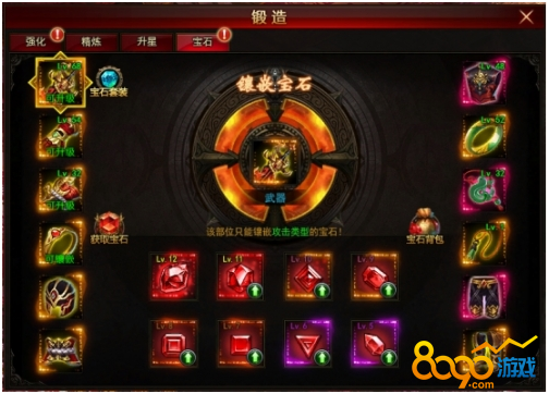 1. 各个部位只能镶嵌对应属性的宝石,比如:武器只能镶嵌攻击宝石。