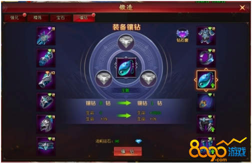 1. 镶钻可以对部位增加额外的基础属性,达到一定等级还会有百分比的提升。
