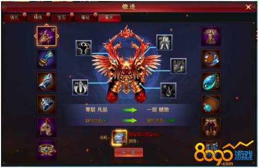 搜索"8090网页游戏"8090《天外飞仙重置版》玩家等级达到30级,即可在主界面下方功能栏内点击锻造进入界面