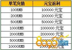活动内容:活动期间,单日单笔充值达到对应要求即可获得100%的元宝返利,活动仅限3天!