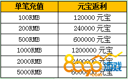 活动内容:活动期间,单日单笔充值达到对应要求即可获120%的元宝返利,活动仅限3天!