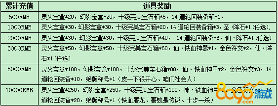 活动内容:活动期间,累计充值达到对应要求即可获得超值奖励,超值奖励大赠送。