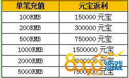 活动内容:活动期间,单日单笔充值达到对应要求即可获的元宝返利,活动仅限3天!
