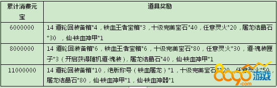 活动内容:活动期间,累计消费达到对应要求即可获得道具奖励;