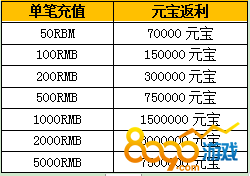 活动内容:活动期间,单日单笔充值达到对应要求即可获的元宝返利,活动仅限3天!