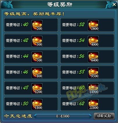 【活动内容】:开服第7天中午13:30时统计,等级排名榜全服前10的玩家会拿到丰厚奖励,排名越高,奖励越丰厚!奖励通过邮件自动发放,请注意查收。