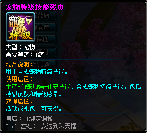 | 特级宠物技能残页*1 | ||