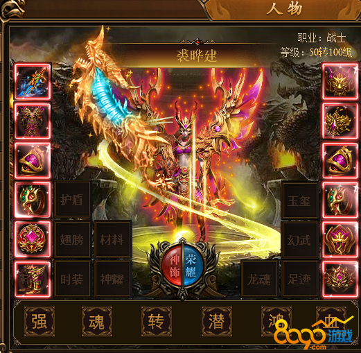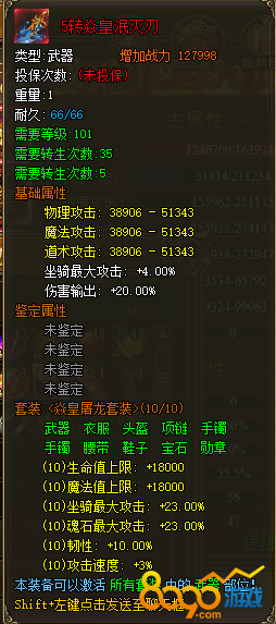 新焱皇屠龙套装佩戴齐全后会有强力的特殊属性加成