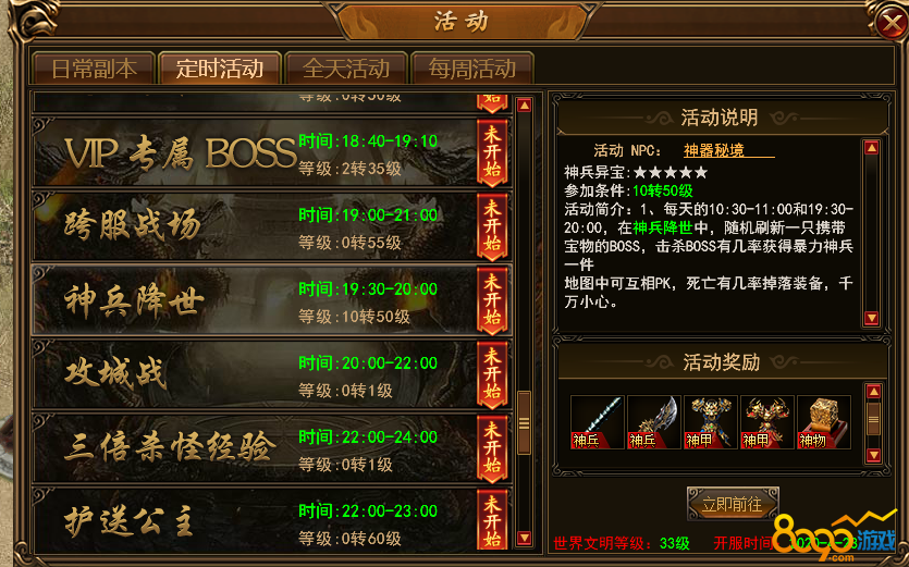 每天10:30-11:00,19:30-20:00,神兵降世活动开启