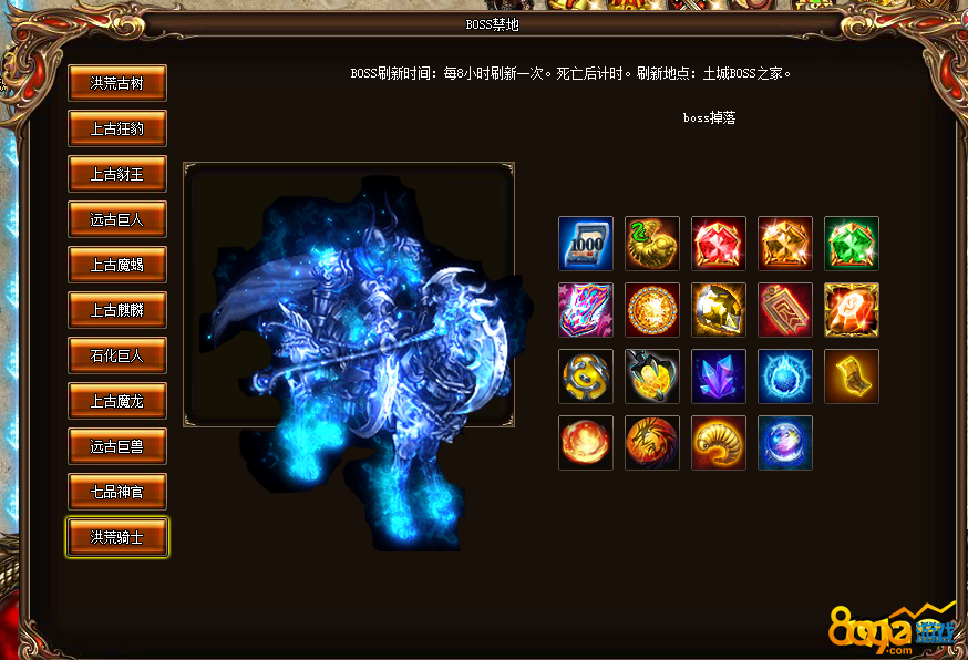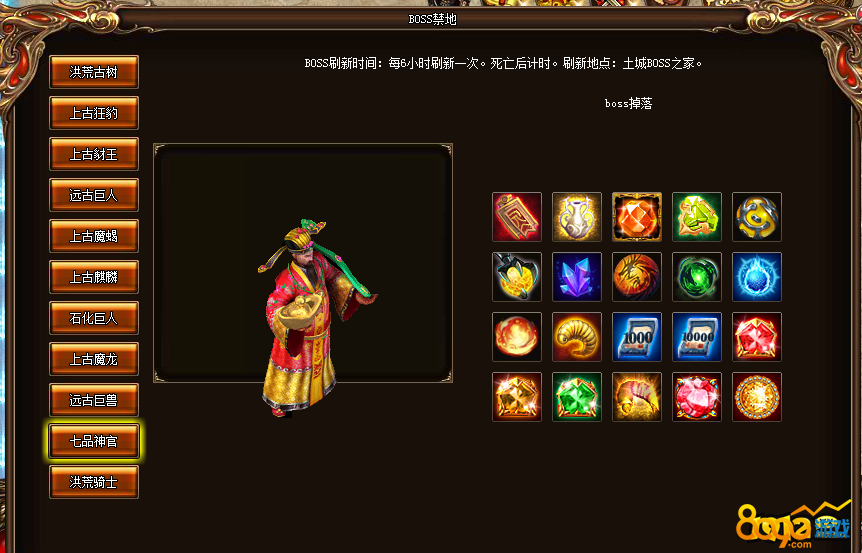 可在游戏上方BOSS禁地图标中查看BOSS刷新时间以及掉落奖励。