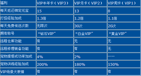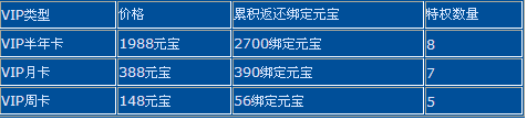 可以看出,VIP半年卡获得的累积绑定元宝返还是最划算的,而且VIP半年卡还有无限传送使用特权,实在是出门做任务、传送到其他地图击杀BOSS必备精品呀。
