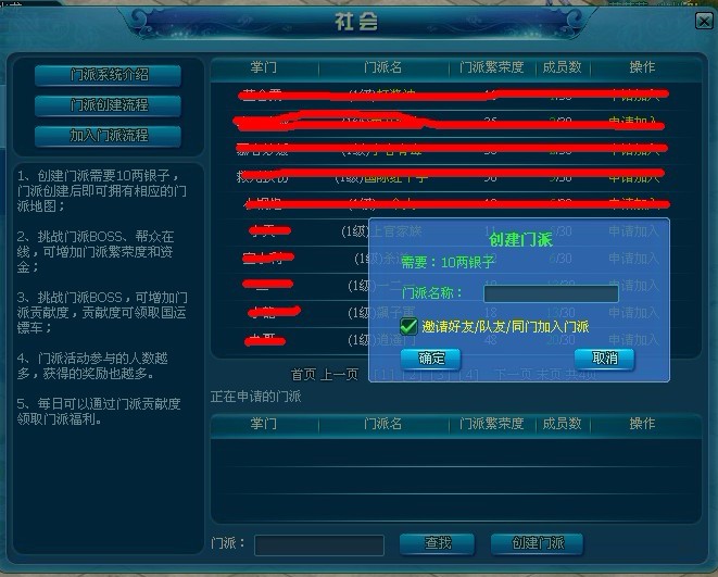 那做行会老大的第一步是从什么地方开始呢?不是手很多人,也不是有很多钱,而是·················先建立一个属于自己的帮会~~~嘿嘿。