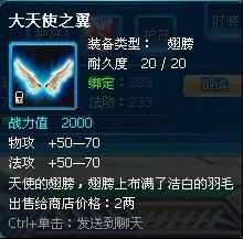 下面就让我们来看看大天使之翼的属性和穿戴效果吧。