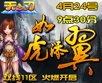 一起来玩8090天之刃吧,8090天之刃双线11服“如虎添翼”将于2012年4月24日上午09:30火热开启!丰富的开区活动,精彩的游戏内容,都等着您来参与!赶紧加入8090天之刃,一起打造一个属于我们共同的美轮美奂的玄幻世界!