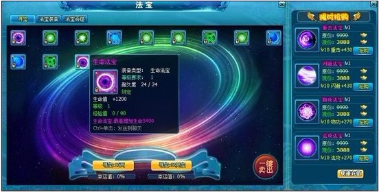 搜索"8090网页游戏"8090天之刃的游戏中 所有的法宝,属性分类为:法功,物功,力量,智力,闪避,重击,体质,身法,定力,生命,物防,法防。