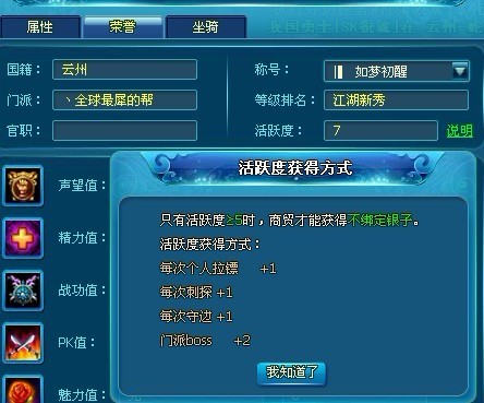 注意一点,只有当天活跃度≥5时才能获得不绑定银两,获得方法如下: