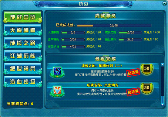 前段时间8090推出了成就系统,确实有一种让人耳目一新的感觉,在游戏里面,成就的高低基本就代表了一个玩家在游戏里面所能多强的实力和多大的影响。下面我就来详细看看成就系统内容的丰富的内容和一些看似高不可攀的任务吧。