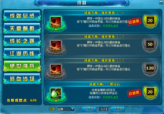最后,成就系统的每个环节已经都有了个一定的了解了,但我知道玩家们可能都会有个疑问,完成全部是如此之难,怎么没有什么吸引人的奖励或称号给予呢,别忘记,这系统才刚开不久,相信以后一定再会加以完善和调整的,所以,有实力的玩家们,别再低调了,一起行动吧。