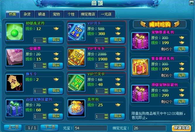 每日返还绑定元宝数目