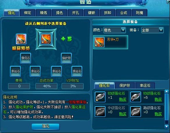 当然 个人推荐1-5级强化不需要放置幸运石和保护符,直接就可以提上去了,在5-6的强化过程中一定要注意了,需要放置保护符 有幸运石的可以放置幸运石提高强化成功率(幸运石可在除魔中获得),然后当一切放置完成后 点击强化 就要看运气和人品咯。6级以后的强化步骤同上。