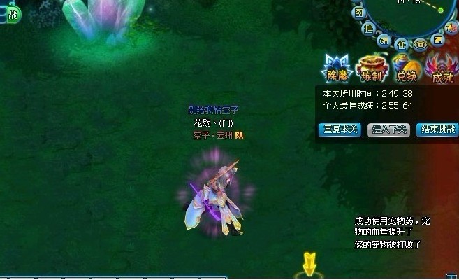 被BOSS打到残血我们立马就要停止攻击,还是要待在X轴,千万别乱走,就这样不攻击BOSS,晃着X轴跑,让宠物去拉仇恨,直至BOSS对宠物产生仇恨攻击宠物,这时候,我们立马脱离X轴走出BOSS攻击范围,收掉宝宝或宝宝战死,BOSS失去攻击目标后,会在攻击范围内寻找攻击目标,如果没有寻找到可攻击目标将回保持静止状态(怎么确定走出攻击范围?屏幕不显示BOSS血量条就等于走出,切记,是不显示!!远程攻击BOSS例外)