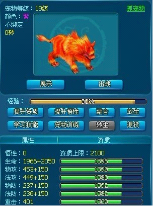通过融合:原本1700的宠物变成资质1900的宠物;