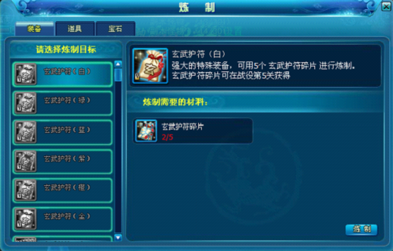2)第5关掉落:玄武护符碎片 ; 收集5个碎片可炼制玄武护符(白).